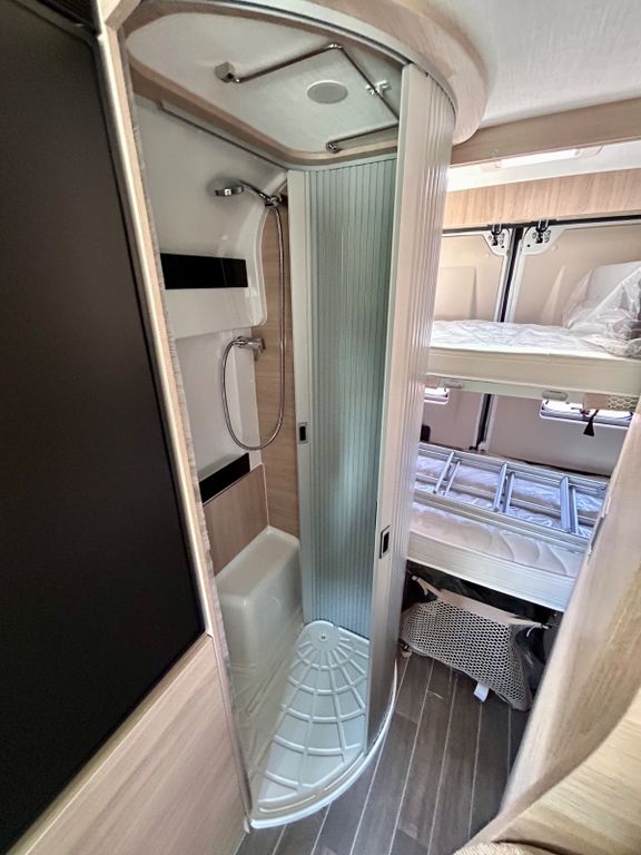 Doppelstockbetten hinten , getrennte Toilette und Dusche .