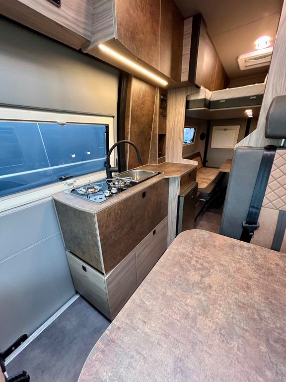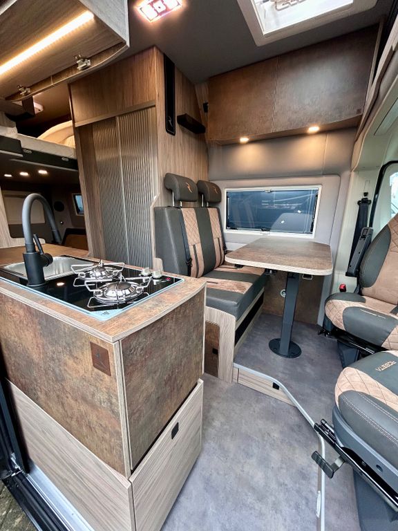 7 Jahre Garantie auf den Möbelbau und Dichtigkeit, alle Oberflächen mit HPL Kunststofffurnier (kratz-und Schlagfest) verleimter und verzapfter Möbelbau aus der Robeta Manufaktur . Das ganze Fahrzeug ist voll Textil ausgestattet, hochwertiger Vinylboden
