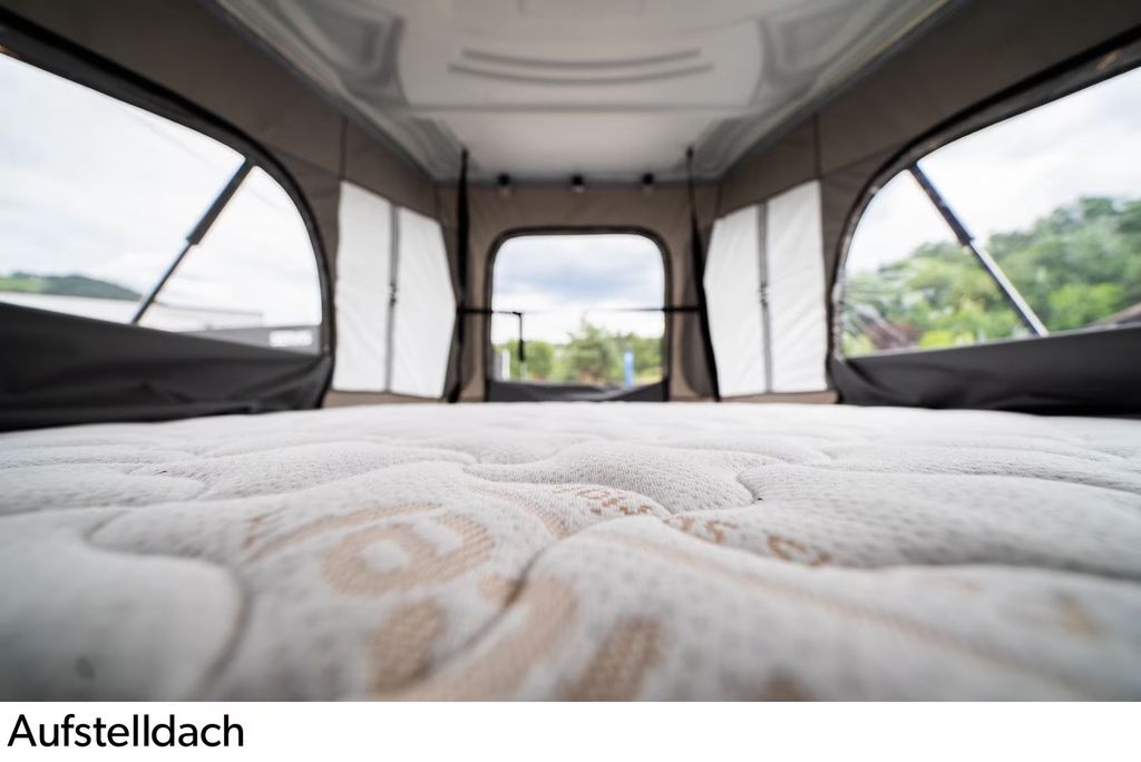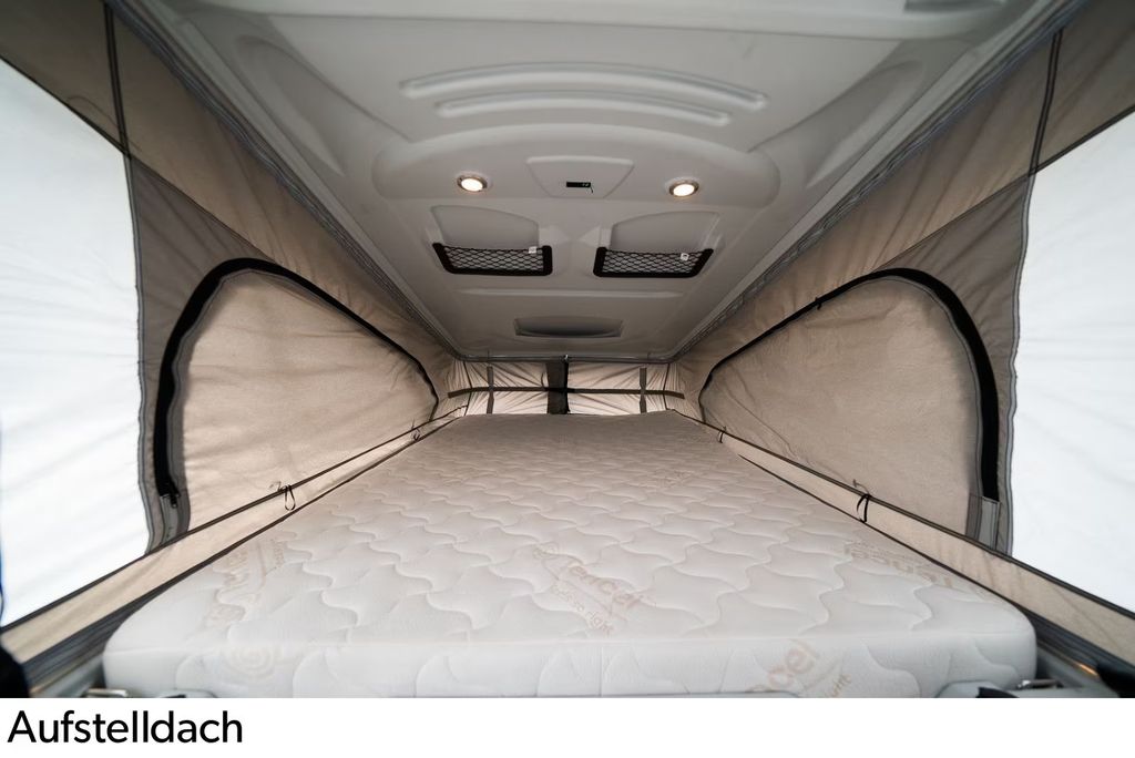 mit bis zu 4 Schlafplätzen (2x unten, Längsbetten mit Loungefunktion und 2x im Aufstelldach )