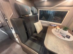 7 Jahre Garantie auf den Möbelbau und Dichtigkeit, alle Oberflächen mit HPL Kunststofffurnier (kratz-und Schlagfest) verleimter und verzapfter Möbelbau aus der Robeta Manufaktur . Das ganze Fahrzeug ist voll Textil ausgestattet, hochwertiger Vinylboden